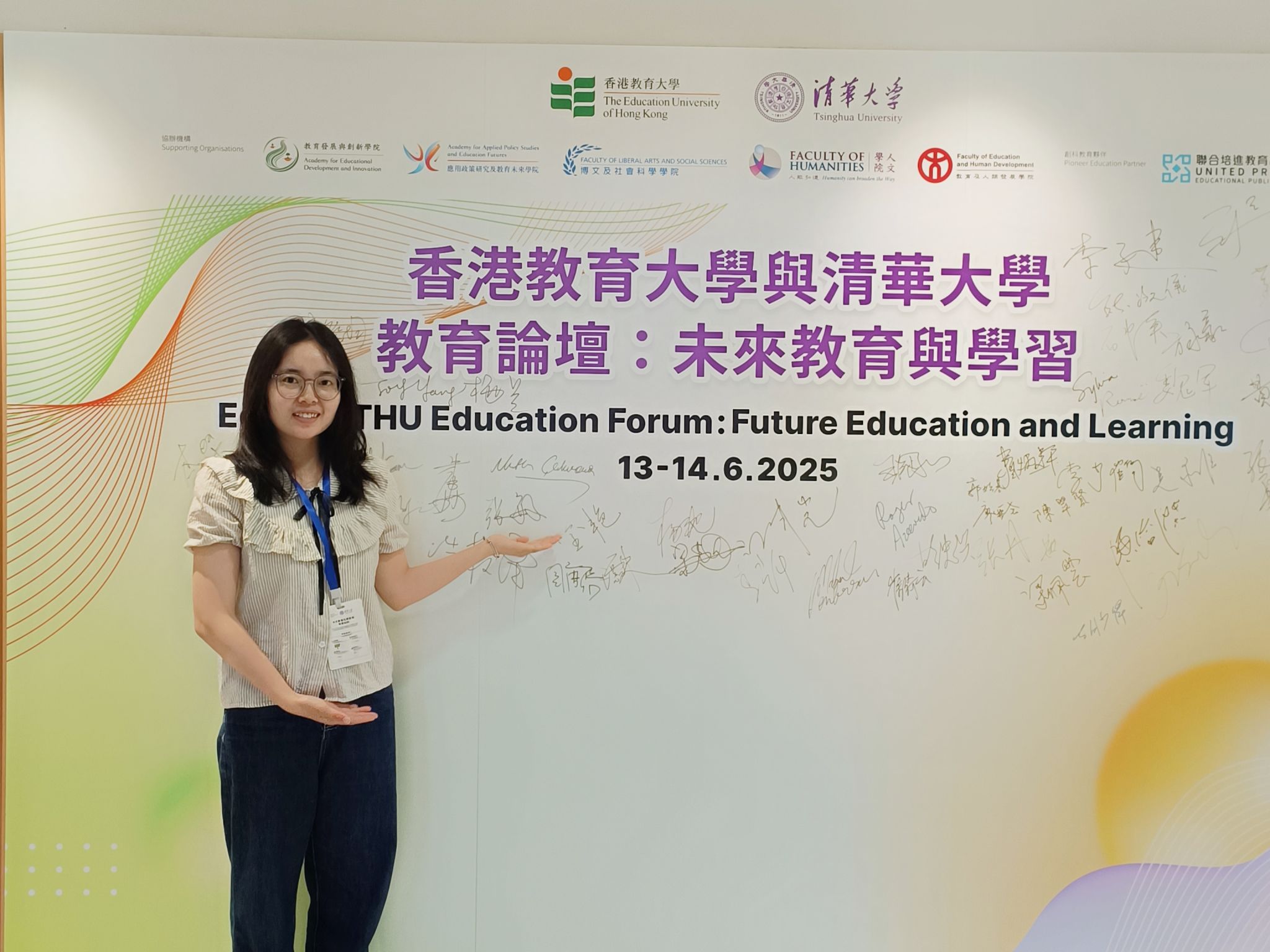 The EdUHK-THU Education Forum on Future Education and Learning, jointly organised by The Education University of Hong Kong and Tsinghua University, was held with great distinction at the University's Tai Po campus on 13-14 June 2025. The forum brought together over 300 education scholars, policymakers, and industry leaders from more than 20 countries worldwide, focusing on the core theme of artificial intelligence reshaping the educational ecosystem. Master student Liu Qian from our institute attended the forum in Hong Kong and delivered an academic presentation.