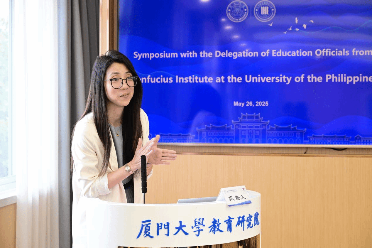 Dean Bie Dunrong extended a warm welcome to the visiting delegation of education officials from Confucius Institute at the University of the Philippines. He introduced to the attendees the institute’s development history, research fields, faculty strength, and international exchanges. He stated that by consistently strengthening research and exploration in disciplines such as higher education theory and policy, education governance and high-quality education assurance systems, as well as regional and international education, the institute continuously enhances its academic influence as a "national hub for higher education research." He reviewed the historical interactions between the institute and the higher education sector in the Philippines, elaborated on the institute’s tradition of research on Southeast Asian higher education, and highlighted the academic exchanges and collaborations between its faculty, students, and institutions in Southeast Asian countries in recent years.