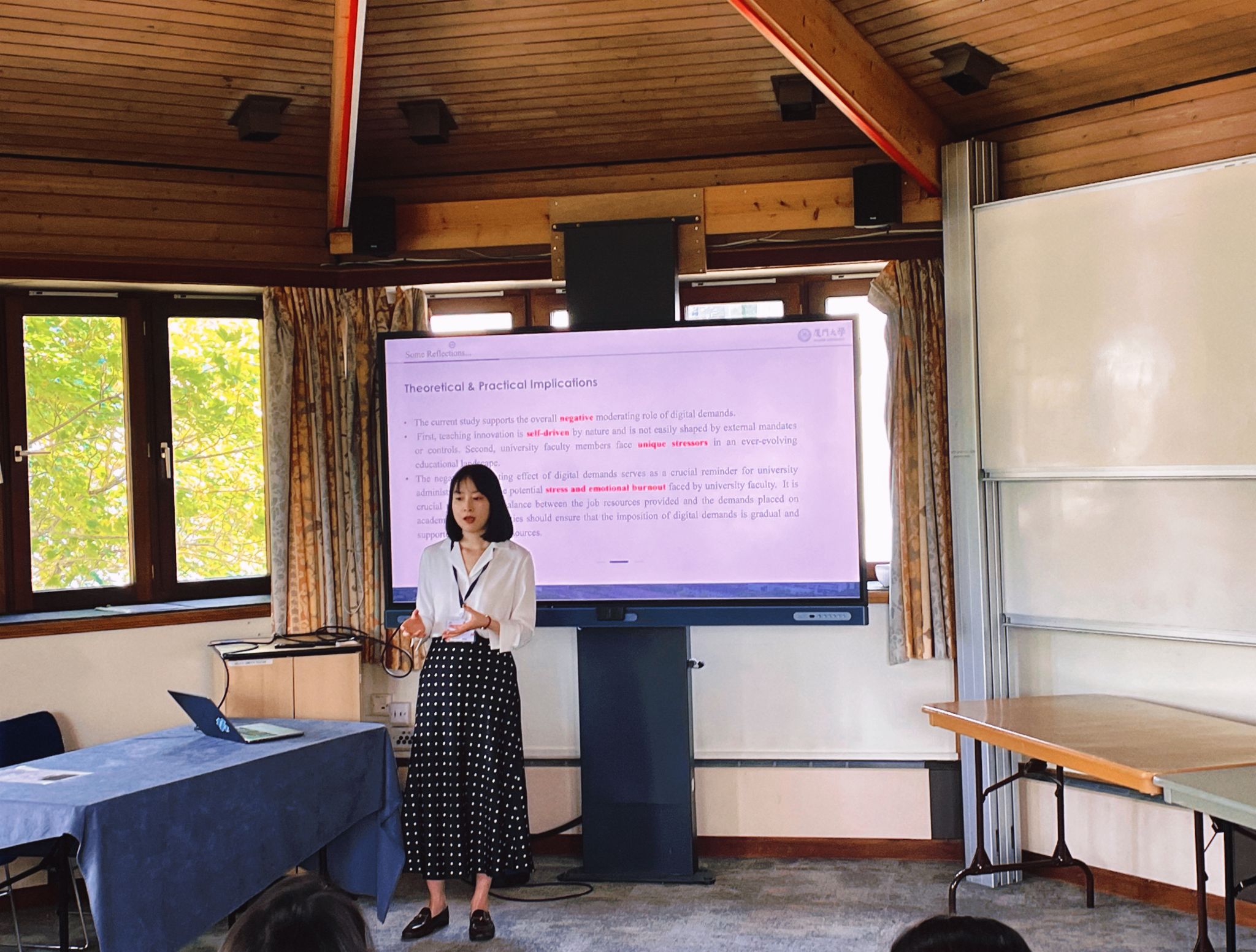 On 23 July, Assistant Professor Yang Zi took the floor in the parallel-session room and presented her study, “Factors Influencing Teaching Innovation at a University: An Extension of the Job Demands–Resources (JD-R) Model in the Digital Age.” Grounded in JD-R theory, the paper unpacks the delicate balance between digital resources and digital demands that university teachers juggle when they try to innovate in the classroom. Her findings offer university leaders a practical lens for matching resources to requirements while steering digital transformation. When the talk ended, questions and comments came quickly from every corner of the hall, and the conversation spilled over into coffee breaks and later sessions. Those informal exchanges opened several lines of joint inquiry and laid the groundwork for future collaborations with scholars from both countries.