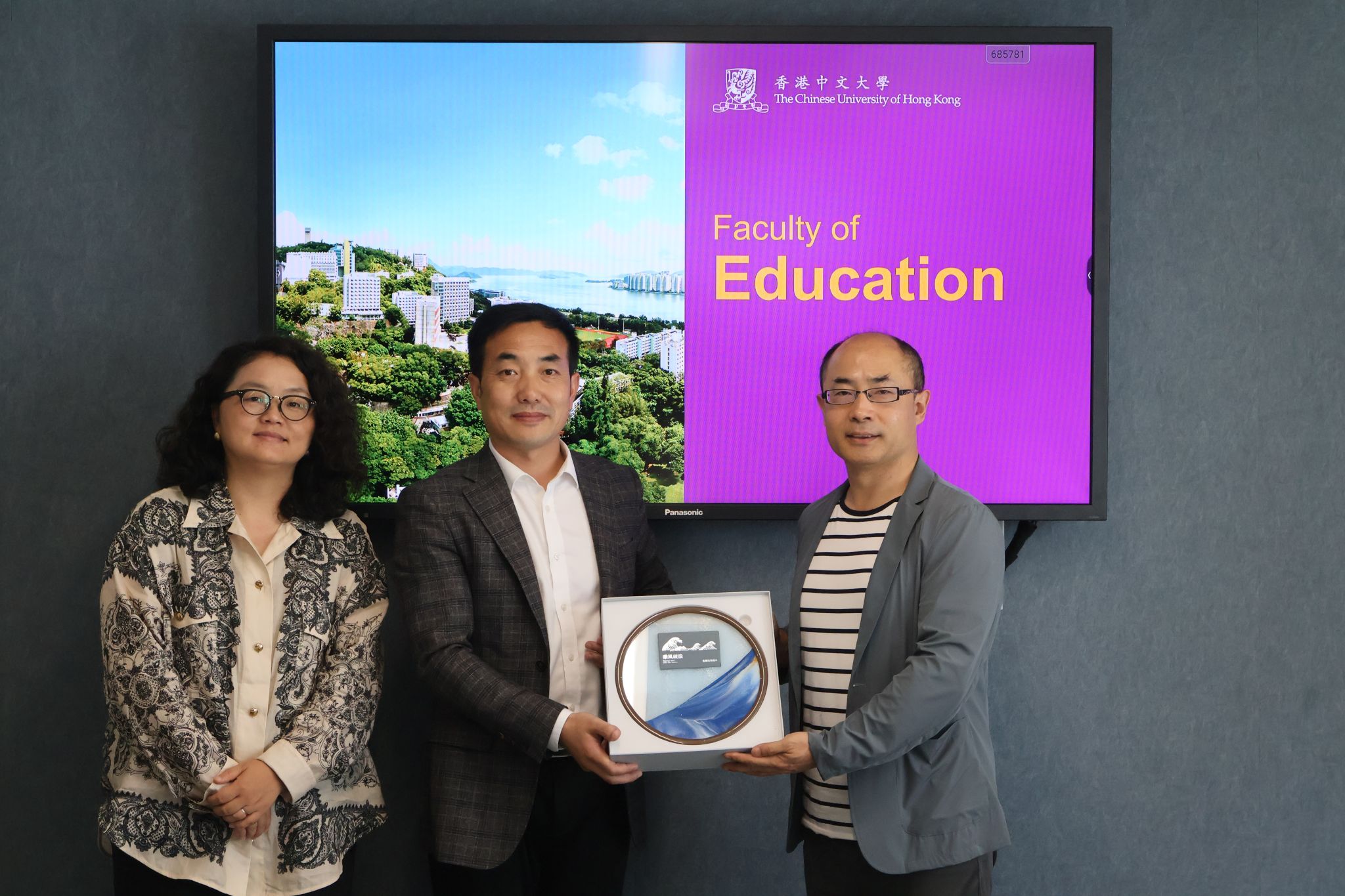 Professor Yang Rui, Dean of the Faculty of Education at the University of Hong Kong, Vice Dean Professor Wu Minhua, and Professor Zhang Chenwei met with Dean Professor Bie Dunrong and his delegation. Dean Yang nostalgically recalled the work and life experiences he shared with Mr. Pan Maoyuan, and fully acknowledged the significant potential for cooperation between the two sides. Both parties held friendly discussions on multiple aspects, including student exchanges, faculty visits, and academic collaboration among teachers, and looked forward to prospects for future cooperation.