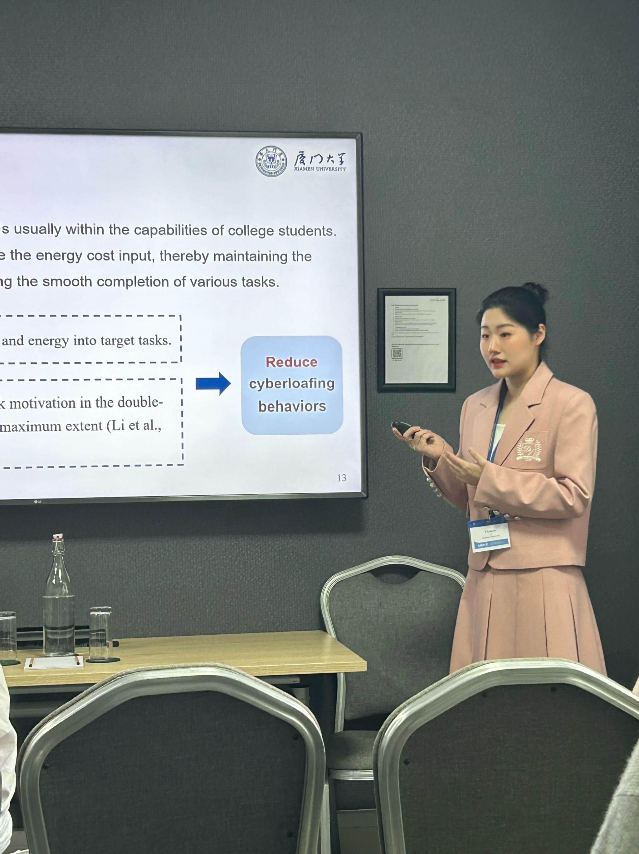 In a parallel session, master’s student Li Chunxin delivered a presentation entitled “The U-shaped Relationship between Stress and Cyberloafing among College Students: The Moderating Role of Stress Coping Styles”. The report mainly explored the relationship between stress and cyberloafing among college students in the digital age, and analyzed the role of stress coping styles in this process.