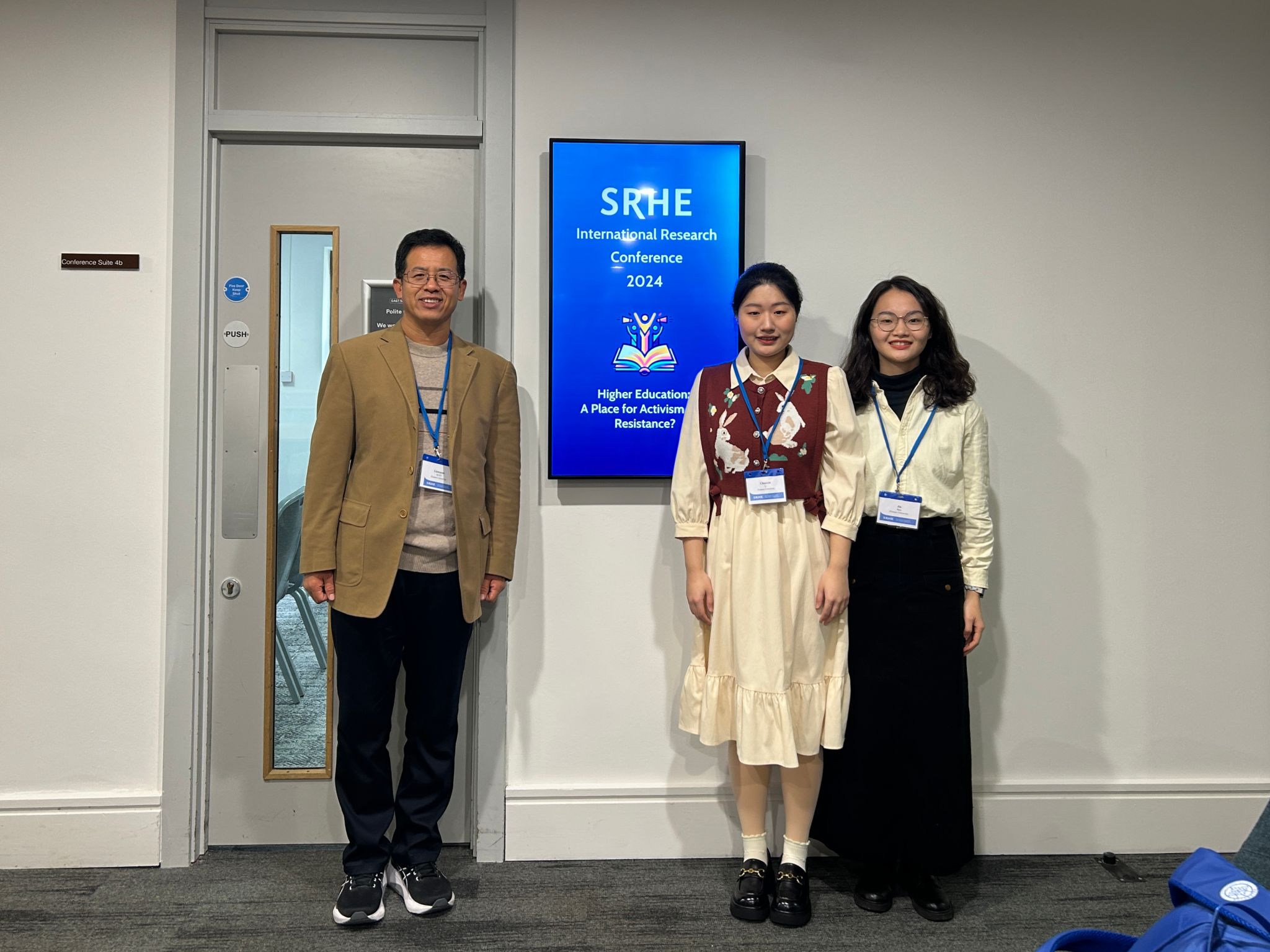 From December 4th to 6th, 2024, the 2024 International Conference of the Society for Research into Higher Education (SRHE) was held at the University of Nottingham, UK. The theme of this conference was “Higher Education: A Place for Activism and Resistance?”. The conference included keynote speeches, parallel sessions, poster exhibitions, and journal interviews. Associate Professor Qiao Lianquan, along with master’s students Li Chunxin and Ren Jia, participated in the conference.