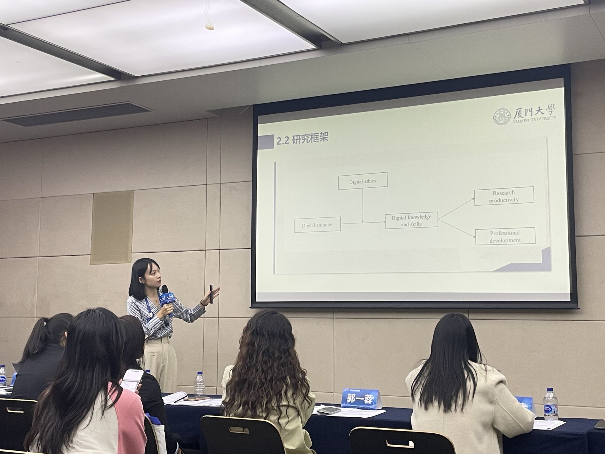 Dr. Yang Zi, Assistant Professor at Xiamen University’s Institute of Education, closed the session with “How Digital Attitudes and Ethics Shape University Faculty’s Research Productivity and Professional Growth.” Constructing a moderated-mediation model that links “attitudes & ethics → knowledge & skills → research performance & professional development,” her empirical analysis demonstrated that faculty members’ awareness of digital ethics significantly influences both scholarly output and career advancement. The finding furnishes a fresh theoretical lens on the mechanisms underlying teacher professionalism in the digital era and provided the forum with a finale that was at once academically rigorous and practically illuminating.