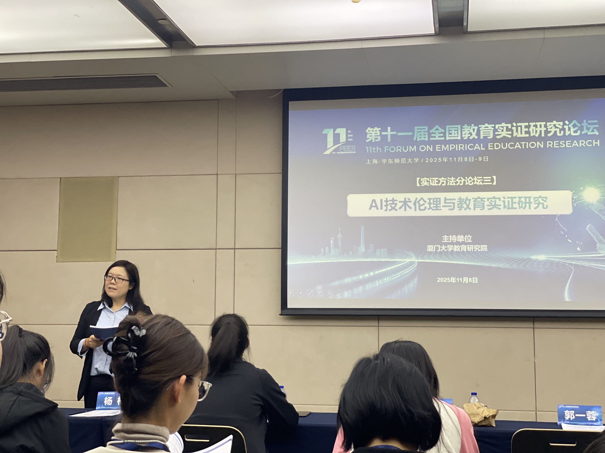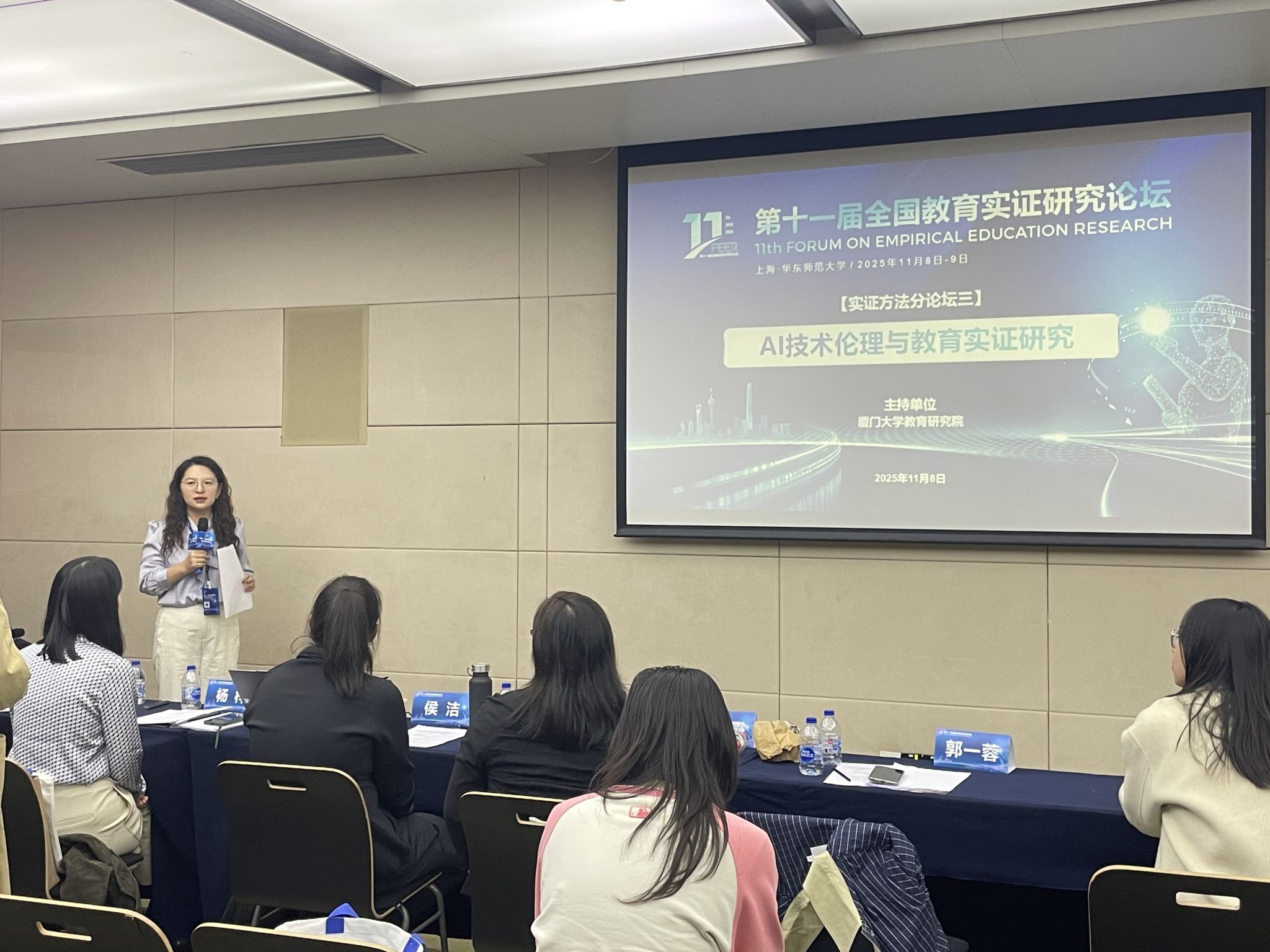 On the afternoon of 8 November 2025, the sub-forum “AI Ethics and Empirical Research in Education” was successfully held at the Shanghai Banma Suzhou Creek International Convention Center as part of the 11th National Forum on Empirical Research in Education. Organized by Xiamen University’s Institute of Education, the session brought together faculty and students from Fudan University, Zhengzhou University, Qingdao University, South China Normal University, East China Normal University, Shenzhen University, Xiamen University and other institutions for an in-depth exchange on the theoretical frontiers and practical challenges at the intersection of artificial intelligence and educational ethics.