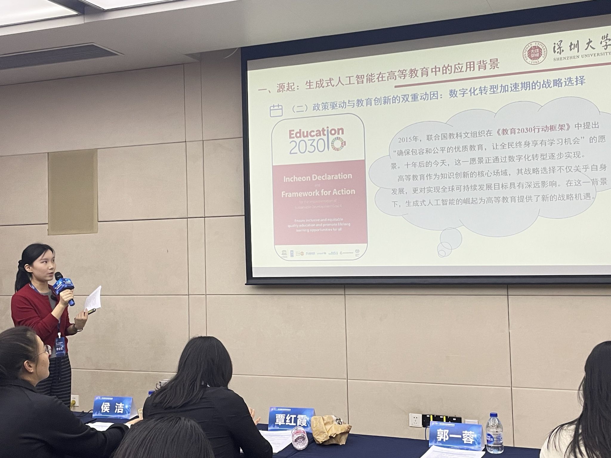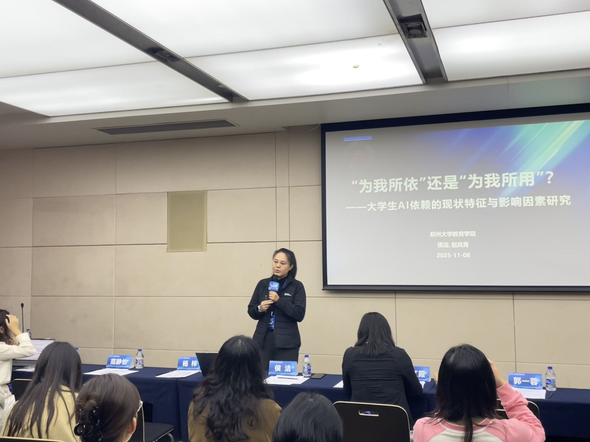 Next, Associate Professor Hou Jie from the School of Education at Zhengzhou University delivered a report entitled “ ‘Lean on It’ or ‘Use It’? A Study on the Current Status and Influencing Factors of University Students’ AI Dependency.” Drawing on systematic survey data, she dissected the psychological structure and behavioral patterns of students’ AI reliance, unpacked the underlying cognitive mechanisms and socio-environmental drivers, and proposed educational strategies for cultivating a rational approach to AI use—offering both theoretical grounding and practical guidance for helping undergraduates engage with artificial intelligence in a balanced, purposeful way.
