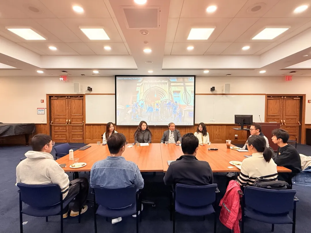 On March 27, Dean Bie Dunrong, Associate Professor Guo Yirong, Assistant Professors Huang Yifan and Cao Xuemeng, and doctoral student Hu Yanting were invited to the Columbia University School of Education. They held a discussion with Amine Mechaal, Director of the Office of Global Affairs of the school, Professor Thomas Brock, Director of the Community College Research Center (CCRC) of the Columbia University School of Education, Research Fellow Xu Jing (a visiting scholar at the Columbia University School of Education), and Song Yu'ang (a doctoral student at the Columbia University School of Education).