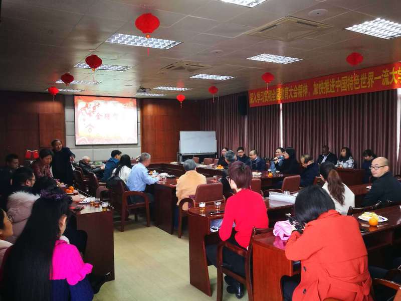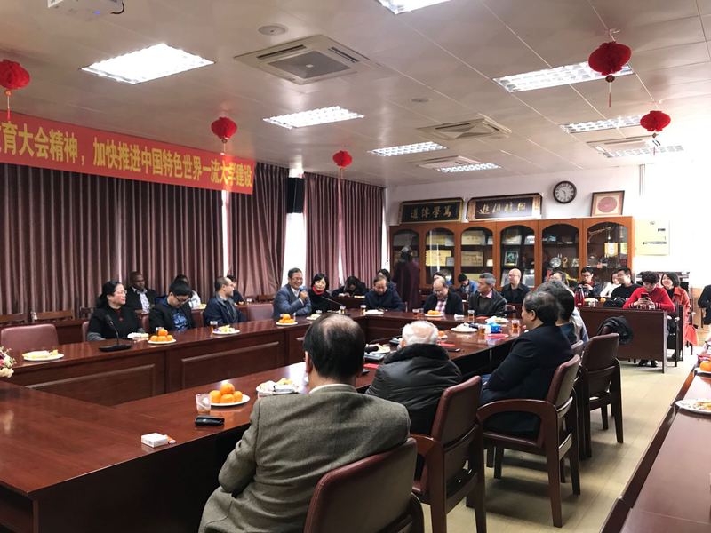 邬大光教授希望潘先生还能为师生和院友派发新春红包100年;陈武元教授希望教育研究院勇创佳绩,不断发展壮大;覃红霞教授和陈兴德副教授历数了在厦度过春节的经历,表达了对教育研究院深深的归属感和认同感;陈文老师虽然已经调离教育研究院,但还是不辞辛劳一大早从福州赶回研究院参加团拜,他说教育研究院也是他的故乡,过年要回家看看已经成为改不掉的习惯;黄建如教授表示自己虽然退休多年,但是一直受到教育研究院的关怀和照顾,过年了很想回来看看大家;杨广云副教授演唱了一首俄文歌曲《莫斯科郊外的晚上》,为大家送上新春祝福,赢得满堂喝彩,将活动进一步推向了高潮。参会其他老师、院友及博硕士生也与大家分享了他们2018年的收获和感悟,传达了对学院、同事、朋友们的美好祝福。