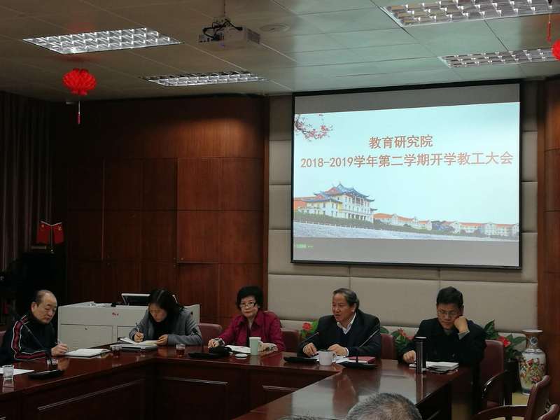 2019年2月18日是2019-2019学年第二学期开学第一天,上午9点,教育研究院在502召开了本学期首次教工大会,本次会议由郑冰冰书记主持,包括潘先生、别敦荣院长、王洪才副院长、覃红霞副院长、傅伯奇副书记、刘海峰教授等在内的三十多名教职员工参加了本次会议。