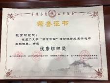 我院硕士生2017级党支部集体创作的《高教研究宗师,教书育人楷模》一文荣获厦门大学“读懂中国”征文二等奖,由杨冬同学作为代表上台领奖。学院在“读懂中国”系列活动中高度重视、精心组织、严格把关,被授予“优秀组织奖”,由傅伯奇副书记代表领奖。硕士生2017级党支部的赵祥辉同学,为到场观众声情并茂地朗诵了获奖征文,再现了全国教书育人楷模、当代教育名家潘懋元先生,乘着改革开放的春风,敢为天下先,奔走呼号创办高等教育学科的历史经过,讴歌了潘先生数十年如一日,由爱而教、以爱施教、因爱成教,关心爱护每一位学生的高尚师德师风,在场的观众无不深受感动和鼓舞。《高教研究宗师,教书育人楷模》一文已作为全校四篇优秀征文之一,获选中国教育电视台“读懂中国”展播作品。