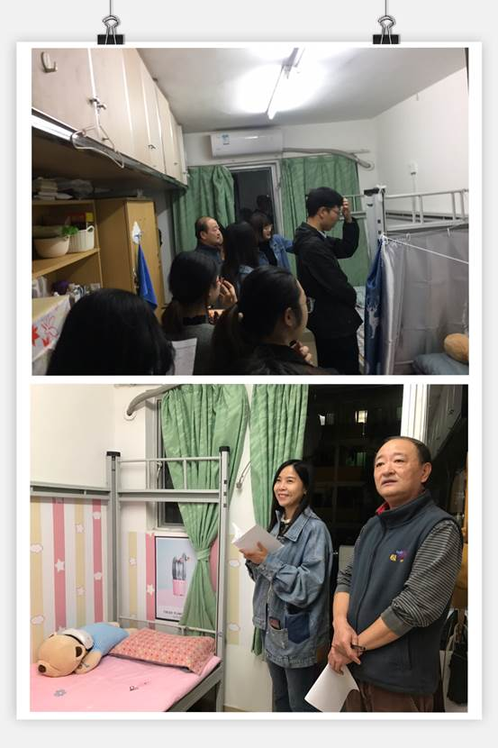 在欢快愉悦的走访氛围中,评委们对各宿舍进行了客观中肯的打分和评价,并对一些优秀宿舍提出重点表扬。最后,傅书记和魏老师提醒各位同学,在日常宿舍生活中注意用电安全,出现问题及时报修,始终保持宿舍环境整洁和气氛温馨。