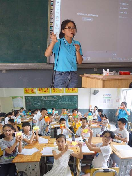 同时,张祯祯主讲了“写一封信给十年后的自己”的手工课程。通过视频播放,提出学同学们结合自己的美好梦想写一封信给十年之后的自己,并将信放入自己亲手制作的信封里。在制作信封环节上,同学们非常感兴趣地学习,并亲手设计出精致的爱心信封。
