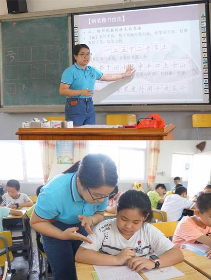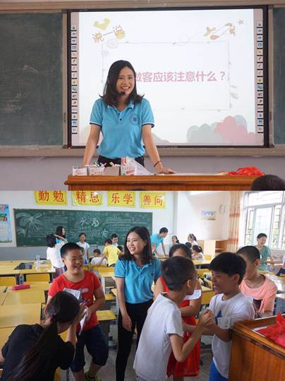 赵祥辉与张祯祯主要教授音乐课,他们给同学们演唱了厦大校歌,同时邀请同学们演唱登俊小学的校歌。张祯祯还在课堂上给同学们表演了片段藏语《在那东山顶上》歌曲,使同学们情不自禁地举手合拍,陶醉在美好的音乐之中。当天,赵祥辉和张祯祯分别教导同学们演唱《知足》和《追光者》的歌曲,让美妙的歌声在校园里久久回荡,令人如痴如醉。