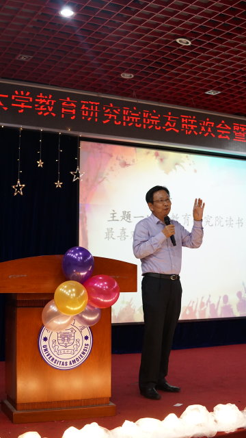 潘懋元先生、刘海峰院长、郑冰冰书记、别敦荣副院长、傅伯奇副书记、王洪才教授及多位老师出席了本次晚会。华中科技大学教育科学研究院院长张应强教授、临沂大学原校长韩延明教授等院友代表也应邀出席活动。本次晚会由博士生谢建及硕士生赵祥辉、胡艳婷、熊文丽联袂主持。