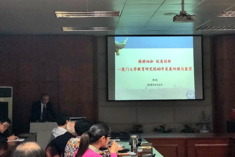 大会伊始,由院团委书记魏艳老师领唱,全体师生共同歌唱了厦门大学校歌。适逢我院40周年院庆在即,陈斌助理教授紧接着为我们解读“教育研究院40周年的历史发展”情况,从办学地点、办学机构变化、办学发展过程等方面作了详细解释,让我们更加深入地了解学院的发展。