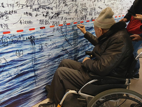 品茶结束后,大家紧接着来到了澳头小镇展示厅,这里用现代艺术的形式将澳头小镇特色渔港发展成艺术小镇的历程一一呈现,主要介绍了小镇的经济产业、从小镇走出去的桑梓名人、小镇的村民影集、小镇的海洋生物等,澳头小镇依海而生,海洋产业是其经济的一大支柱,保护海洋生态也显得尤为重要,小镇展示厅里也正在举办保护海洋生态的活动,志愿者们还盛情邀请潘先生等老师在此次活动的签名墙上签名支持。
