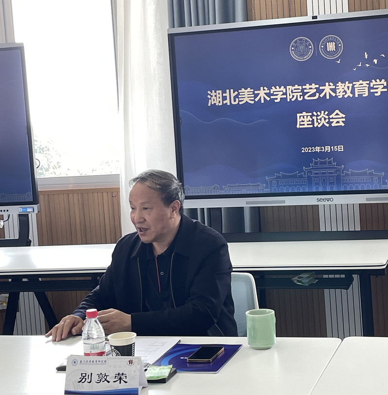 别敦荣代表教育研究院对来宾表示热情欢迎,并表示,自己一直关注湖北美术学院的建设发展。他建议,发挥华中地区唯一一所多学科门类与多学历层次办学的高等美术学府、我国独立设置的八所美术学院之一的办学传统和优势,做好学院发展顶层设计,注重加强教师职业素养训练和艺术疗愈等特色方向建设;积极完善师资结构,引进具有教育学学科背景的师资;重视艺术教学法课程建设,全过程培养学生的教育能力,培养高素质美术专业教师。