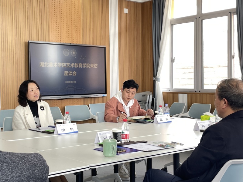 2023年3月16日,湖北美术学院艺术教育学院党委书记徐帆一行到访我院。院长别敦荣、院党委副书记姚有新和教师代表杨梓参加座谈交流。