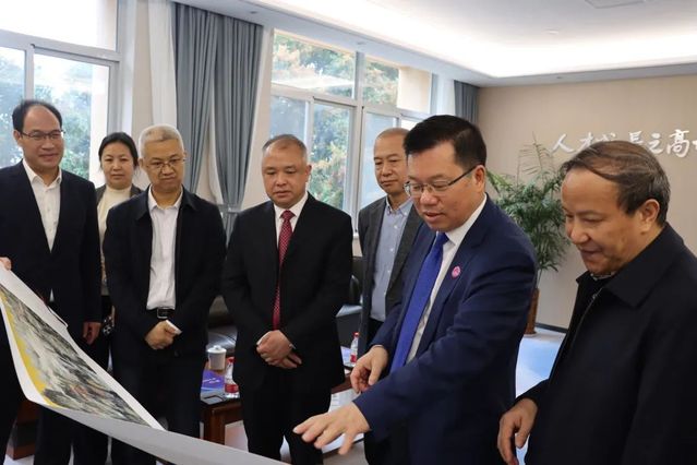 双方还就共同深化战略合作、拓宽合作领域等话题进行了深入探讨。贺祖斌校长一行考察了我院办学空间和办学条件,并向我院赠送了广西师范大学校园风景画轴和校史丛书。