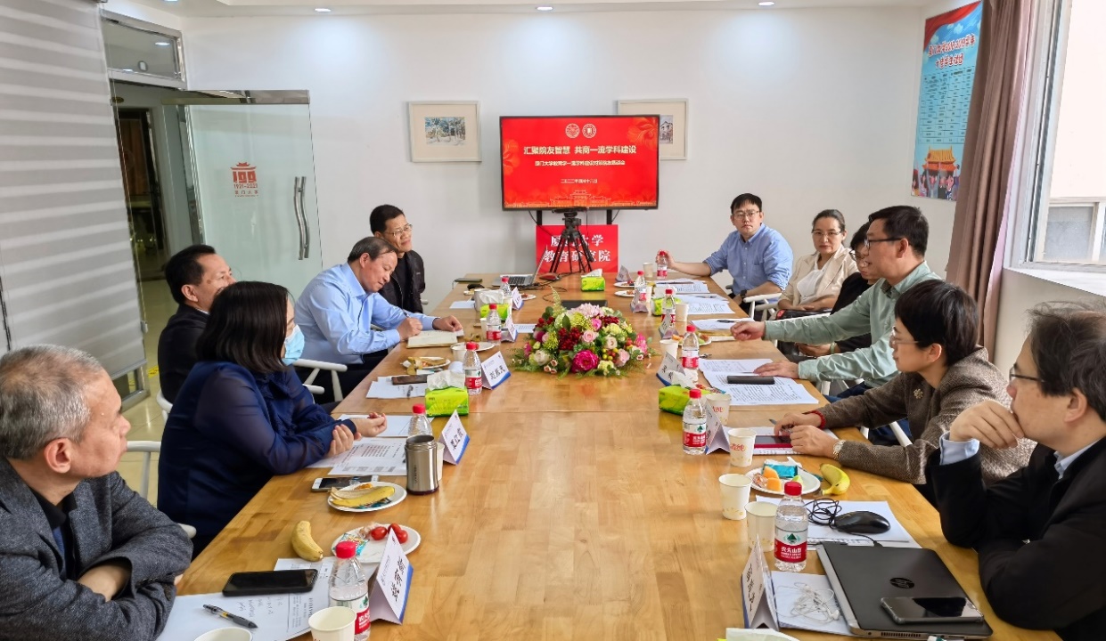 4 月 16 日上午,厦门大学教育学一流学科建设对策院友恳谈会在学生公寓海韵八号楼610会议室召开。化学化工学院党委书记宋毅、国际中文教育学院/海外教育学院院长陈志伟、档案馆馆长兼文博管理中心主任石慧霞、台湾研究院教授张宝蓉、信息与网络中心主任许卓斌、教师发展中心副主任薛成龙等部分在校内各单位任职的院友代表受邀参加恳谈会。院长别敦荣,副院长王洪才、覃红霞,党委副书记姚有新等院党政领导班子成员参会。会议由院党委书记刘振天主持。