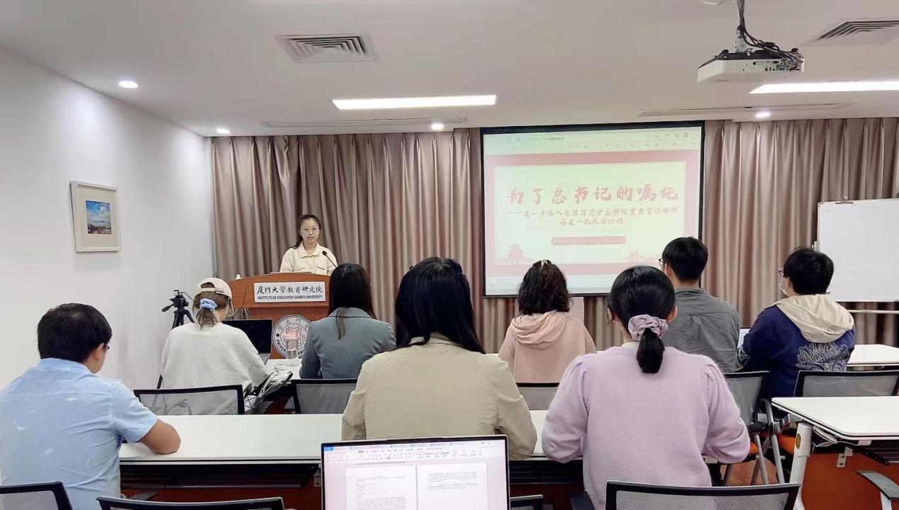 2022年4月,我们迎来习近平总书记致厦门大学建校100周年重要贺信一周年,为进一步深入学习习近平总书记重要贺信精神,把总书记的殷殷嘱托转化为奋进世界一流大学建设的强大动力,引导全体党员不断提高政治判断力、政治领悟力、政治执行力,进一步增强“四个意识”、坚定“四个自信”、做到“两个维护”,奋力书写高等教育发展的厦大篇章,4月18日上午,教育研究院博士生2021级党支部在海韵八六楼大报告厅开展《为了总书记的嘱托——进一步深入学习习近平总书记重要贺信精神,奋进一流大学征程》党日活动。