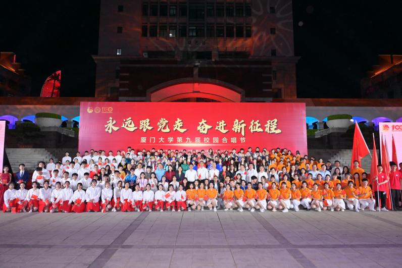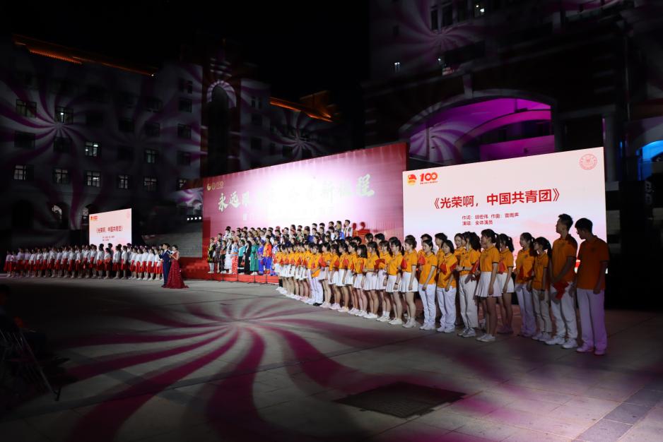 活动尾声,在教育研究院、药学院、少数民族预科班合唱团的领唱中,全体观众起立合唱了《光荣啊,中国共青团》,掀起了演出的高潮,昂扬的歌声回荡在整个厦园之中。
