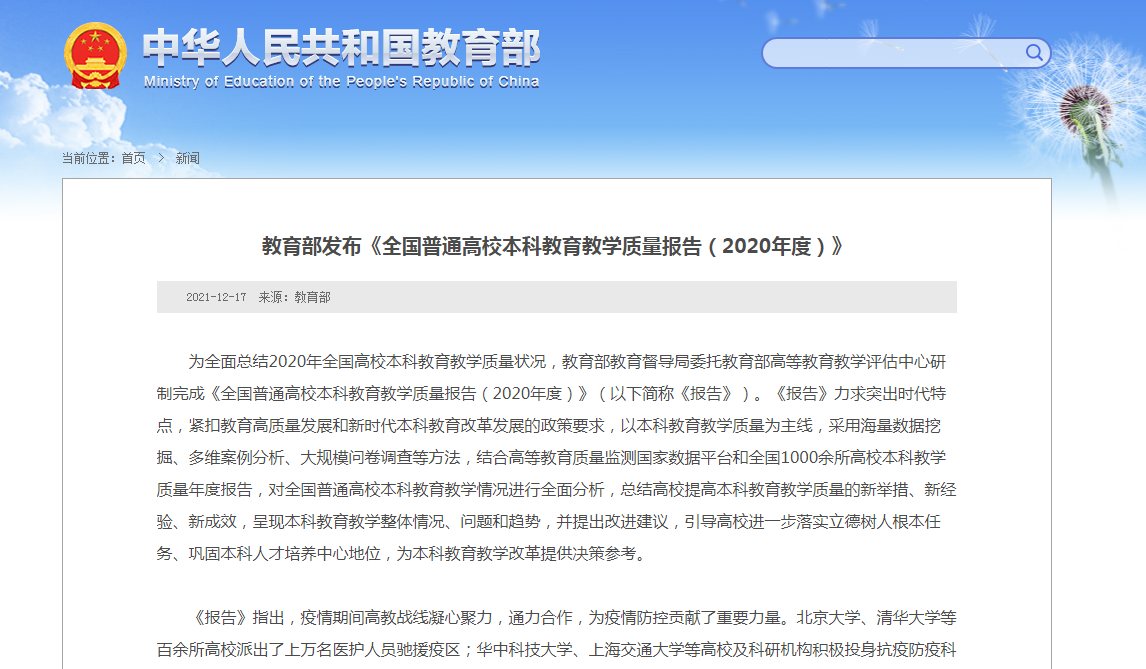 日前,教育部正式发布《全国普通高校本科教育教学质量报告(2020年度)》,引起社会广泛关注,央视新闻报道,各大主流网络平台和平面媒体转发。该报告由教育部教育督导局委托教育部高等教育教学评估中心研制,厦门大学教育研究院专家组牵头,以“服务国家、建设一流”为宗旨,协同西安交通大学、同济大学等多家单位专家,在评估中心的领导和统筹下共同完成。