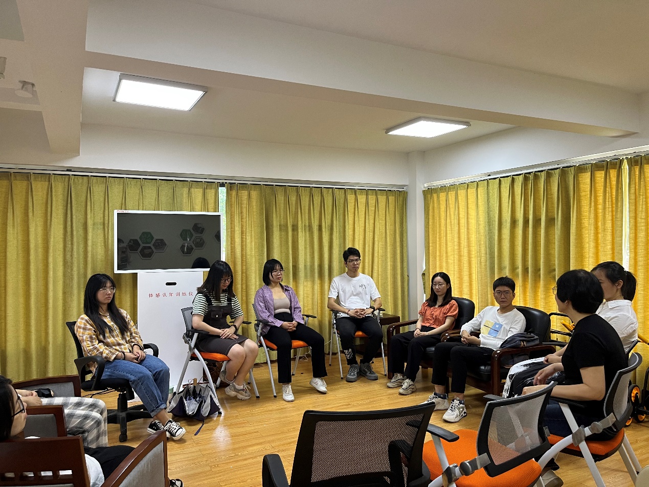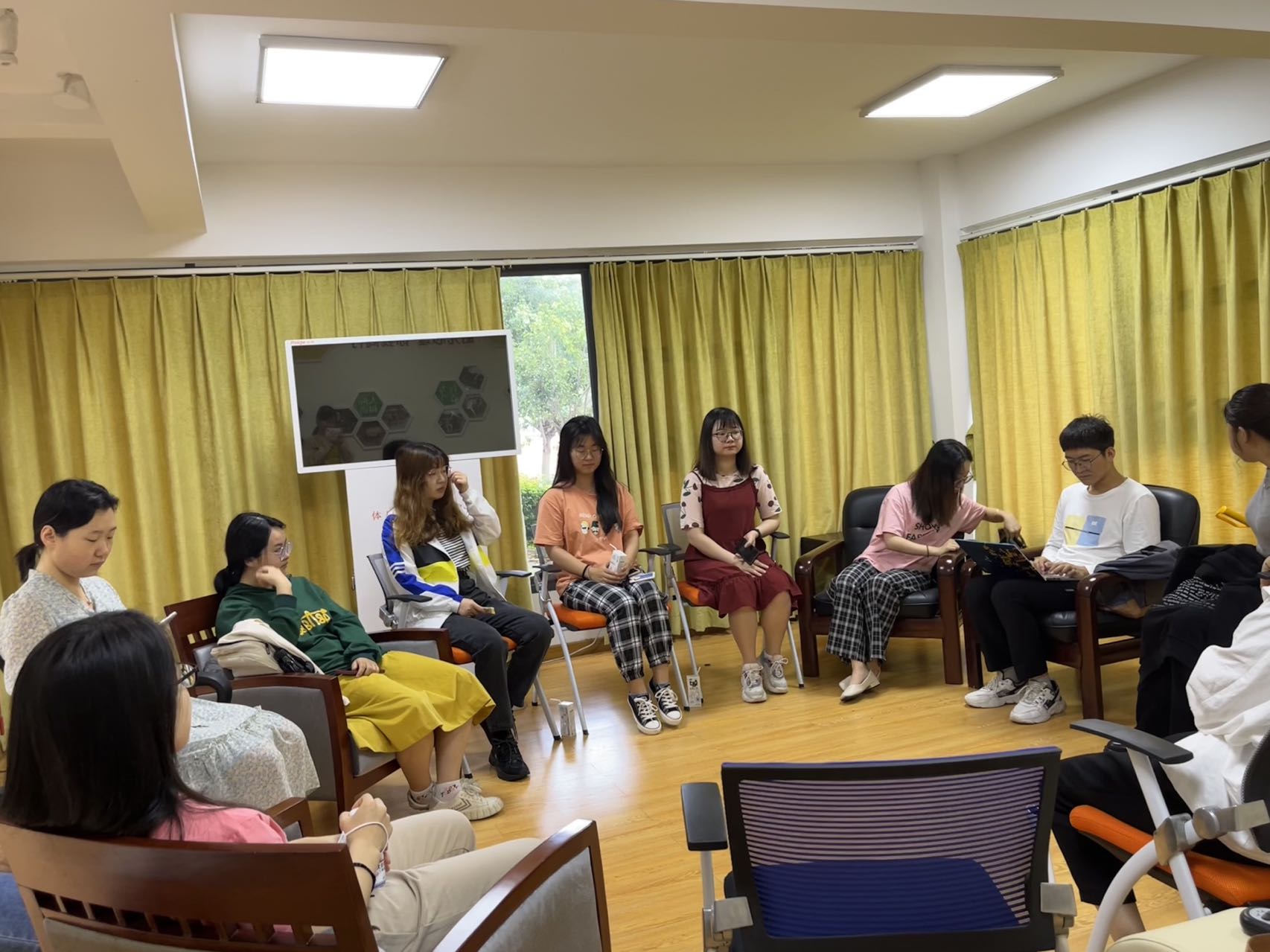 5月27日,在第五次心理团体辅导活动中,申老师为了让同学们更好地集中注意力,让大家体验了一个新的小游戏。通过小游戏选出了三位同学,老师让她们各自扮演上次“看见”的动物。第一位同学是一只小狗正在撒尿,第二位同学是一只蹲坐着的委屈的小狗,第三位同学是一只行走的大象。从表演中,大家仿佛“看见了”其所想的画面。然后,申老师为大家讲述了何为“解离”,常见的表现是什么。接着老师通过催眠帮助大家链接和寻找“内心的智慧资源”,有的同学找到了,有的同学没有找到,也说明了大家当下所能利用的心理资源是不一样的,需要大家不断增强自身的心理资源,强大自身。