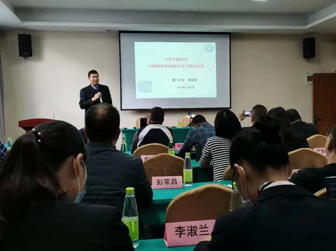 12月6日上午,我院李国强副教授应邀为福建省“十三五”第二批小学名校长后备人选第五次集体研修班做开班课程报告,报告题目是“新时代中国教育的道路自觉与理论自信”。在三个多小时的报告过程中,李国强老师以近现代以来各国教育历史和典型经验、教育理论流派之争、教育哲学反思为叙事基底,结合我国社会和教育改革发展现实,在中外教育历史、理论和实践的比较分析过程中,对党的十九大、十九届五中、六中全会精神以及第五次全国教育大会精神进行了阐释,重点讲解了习近平新时代中国特色社会主义思想的核心要义、新时代中国教育道路的丰富内涵、深刻原理和面临的困难,强调了我国教育在第二个百年奋斗目标过程中坚持党的教育方针的重要性,重申了“九个坚持“对中国教育发展的重要指导意义,同时提出了反思欧美教育经验,提升道路自觉和理论自信,走中国特色社会主义教育道路,办令人民满意、令人类可持续发展的教育等观点,并为中小学校长如何融入新时代中国教育道路提出了宝贵建议。