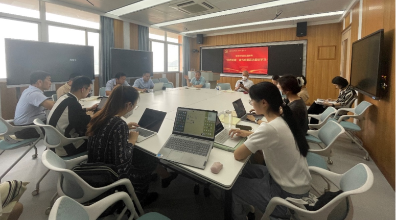 2023年5月22日下午,院党委在黄宜弘楼401会议室开展学习贯彻习近平新时代中国特色社会主义思想主题教育“学思铸魂”读书班第四次集体学习。此次集体学习由院党委副书记姚有新主持,院党政领导班子成员、科级干部、党支部书记和教工党支部党员以线上、线下方式参加学习。
