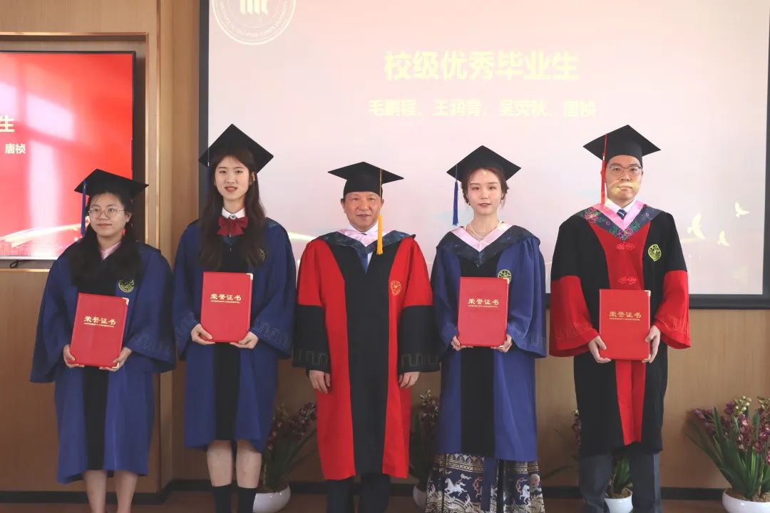 刘振天宣读了校级优秀毕业生名单,表彰他们在校期间的优异表现。他希望受表彰的毕业生及其他毕业生牢记“自强不息、止于至善”的校训精神,再接再厉,树立为祖国为人民永久奋斗、赤诚奉献的坚定理想,积极投身全面建设社会主义现代化国家新征程,为母院增光添彩。别敦荣为校级优秀毕业生颁发荣誉证书。