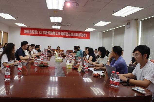 7月1日下午,博士生调研团赴深圳大学高等教育研究所进行参观和座谈,深圳大学教育学部副主任李鹏虎副教授致欢迎辞,并简要介绍深大高教所的人才培养情况。覃红霞副院长对深大高教所的热情接待表示衷心感谢,随后介绍了厦大教研院博士生调研团的历史以及本次调研的目的。