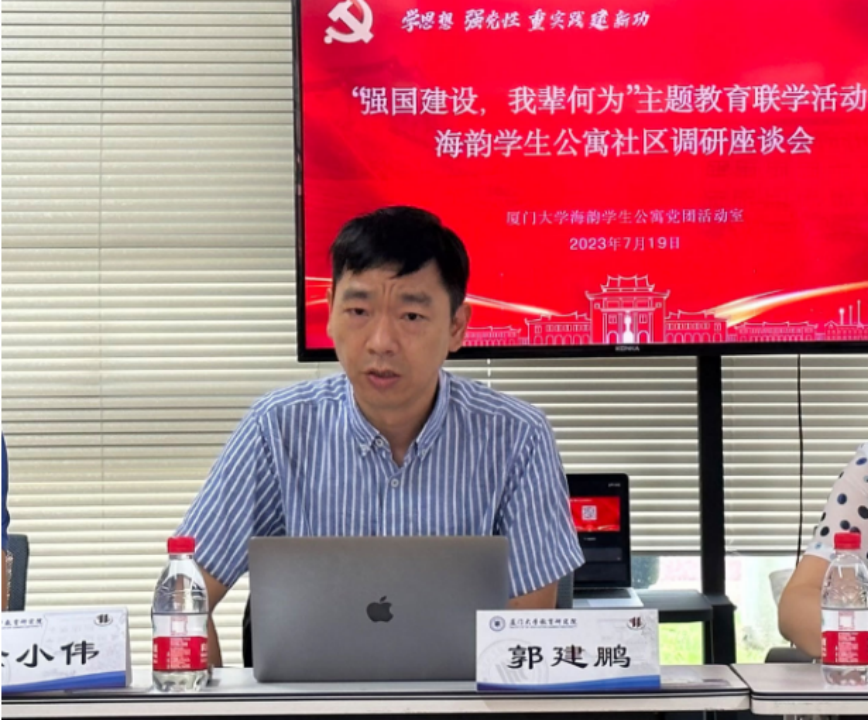 2023年7月19日上午,一场题为“强国建设,我辈何为”主题教育专题联学活动暨海韵学生公寓社区调研座谈会在厦大学生公寓海韵园区14号楼“一站式”学生社区党团活动室里举行。
