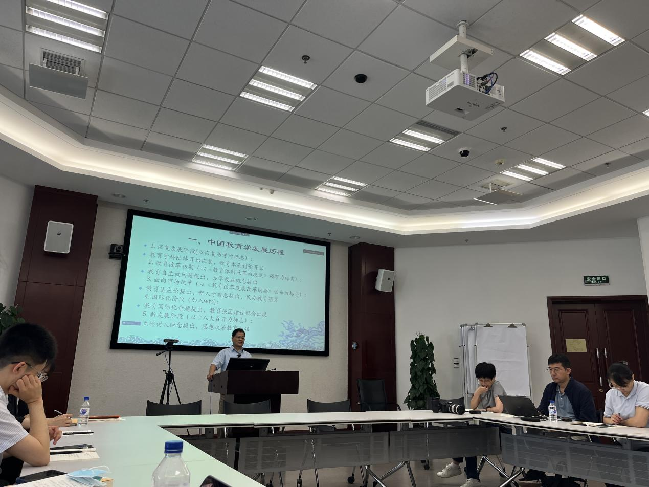 7月31日,王洪才教授所带领的调研团于中国大连高级经理学院进行参观、交流与座谈。上午,团队首先在线上观看了中国大连高级经理学院正在举行的民营企业干部培训开班仪式,与学院骨干教师针对干部教育学与成人教育的关系、课程设计、干部教育研究等问题进行了两个小时的非常深入的探讨与交流。下午,王洪才教授向中国大连高级经理学院骨干教师作了关于《教育学发展历程与高等教育学科发展经验》的学术报告。会后,学院教师与王洪才教授进行了近一个小时的交流。晚上,中国大连高级经理学院党委书记、常务副院长邱宝林与团队就干部教育学学科建设进行了比较深入的交流。邱宝林书记简明扼要地对学院的干部教育的特点、发展规划、学科建设困惑等进行了介绍。王洪才教授也针对干部教育学学科的建立准备谈了一些自己的想法。