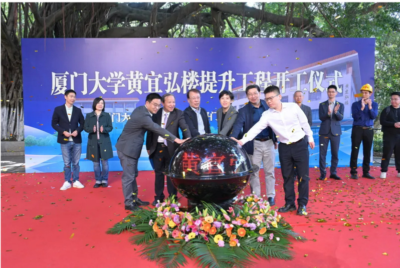 2021年11月12日上午,厦门大学黄宜弘楼提升工程开工仪式在黄宜弘楼前广场隆重举行。厦门大学原副校长、教师发展中心主任邬大光,厦门大学教育发展基金会秘书处副秘书长赵晓慧,校资产与后勤事务管理处副处长崔庆炜,校招投标中心主任王沈扬,教育研究院院长别敦荣,副院长覃红霞,党委副书记姚有新,厦门大学高等教育发展研究中心副主任郭建鹏,师生代表,以及工程设计、施工单位代表共同出席了开工仪式。仪式由厦门大学教育研究院党委书记刘振天主持。