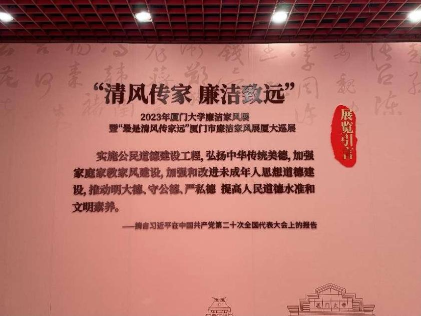 2023级硕士生贾晨:“参天之树,必有其根,怀山之水,必有其源。”而家庭的活水就是家风,此次家风巡展,我学习到潘懋元先生优秀的家庭风貌,如微风一般拂过我的心底,它留有潘先生的印记,体现着家族成员的精神品质、道德风尚和家族文化特质。“欲治其国者,先齐其家”,历史的长卷用脚步丈量不完,潘先生历尽一生在发扬其为教育献身的精神,在先生古朴清正的家风故事中,我聆听其教诲,感受其赤诚的家国情怀,也让浩然之气回荡在我自己的心中。“清白家风不染尘,冰霜气骨玉精神”,潘先生的家风将会赓续不断。