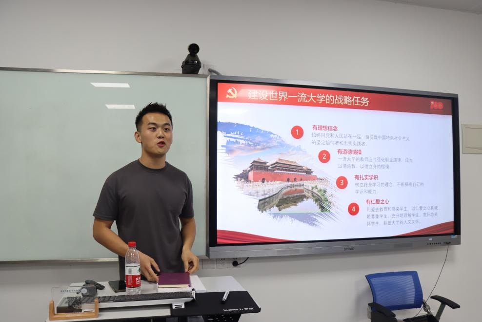 按照研习活动安排,何子耕同学作“习近平总书记关于建设中国特色世界一流大学重要论述”的学习汇报。他从习近平总书记关于建设世界一流大学的战略意义、战略任务和战略举措三个方面,分享了自己的研究与思考。他表示,作为中国高等教育研究“国家队”的学子,要深刻认识肩负的时代使命,大力弘扬教育家精神,为建设教育强国矢志担当作为。