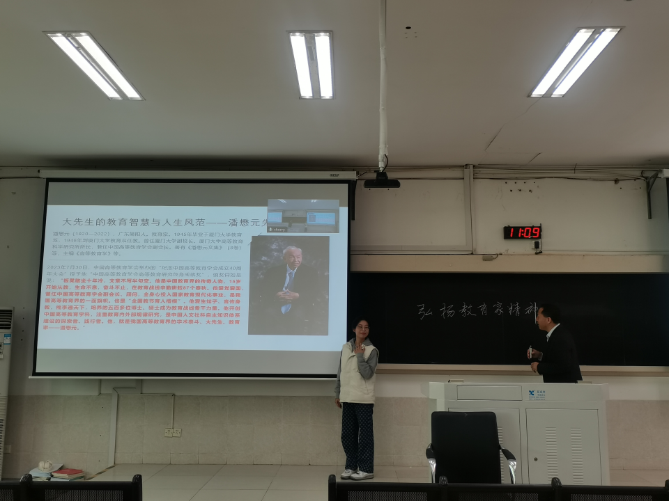 12月5日,刘振天教授又组织了一场以“弘扬教育家精神”为主题的讨论会。160多名研究生同学线上线下分9个小组展开充分而热烈的讨论,同学们就什么是“教育家精神”“新时代青年如何践行教育家精神”等问题发表了各自的想法。其中,教育研究院硕士新生赵楷雯同学通过讲述著名教育家、全国教书育人楷模潘懋元先生的生平和感人事迹,表达了她以潘懋元先生为榜样,对教育家精神的具象理解。马克思主义学院的博士新生章翔从自己阅读的一本书《无知的教师》中为学生们深入剖析了教育主客体之间辩证关系问题,表达了真正的教师应该不断扩充学生主体智慧和能量,要不断培育启智润心、因材施教的育人智慧的观点。刘振天教授对同学们汇报和讨论的内容,进行了深入精彩的点评。他充分肯定了同学们认真准备的积极态度和发表的独到见解,阐述了何谓精神、何谓教育家及何谓教育家精神,教导学生要心有大我、至诚报国,在伟大的新时代勤学笃行、求是创新,为教育强国、人才强国和科技强国建设贡献青春热血。