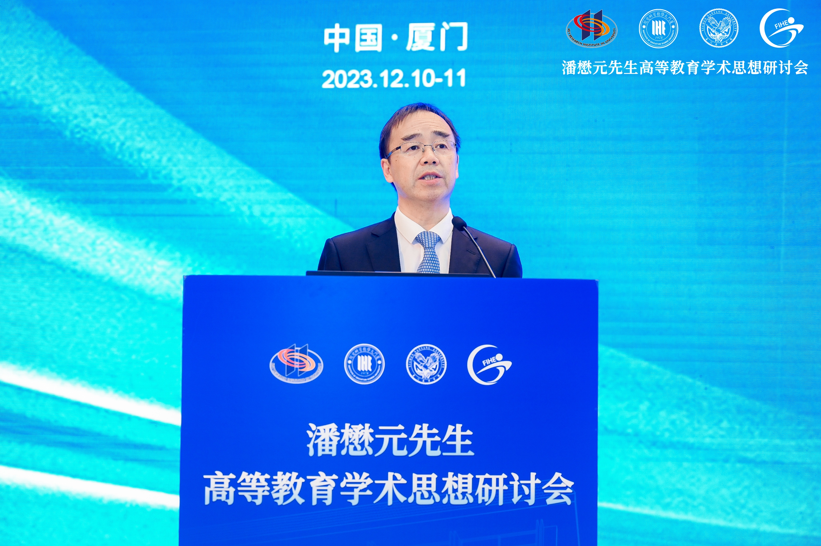张宗益代表厦门大学向出席会议的领导、嘉宾表示热烈欢迎,向潘先生为高等教育学科建设和高等教育事业发展作出的杰出贡献致以崇高的敬意。他指出,潘先生是中国高等教育学科的开拓者、见证者和集大成者,在他的引领和推动下,厦门大学教育学科积极探索中国特色、世界一流的学科发展模式,成为中国高等教育研究重镇。他期待本次研讨会能为高等教育理论创新和学科建设提供方向指引。厦门大学将继续弘扬潘先生“敢为天下先”精神,为中国高等教育学科自主知识体系建设、推动教育强国发展发挥更大作用。