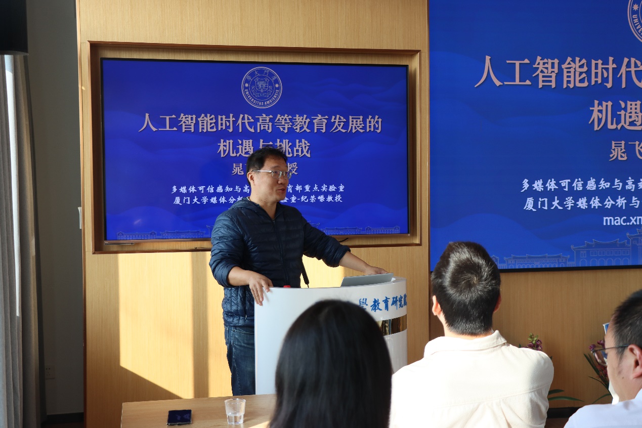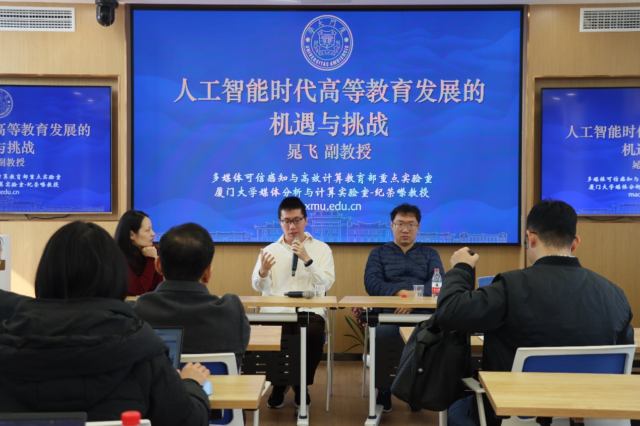 2024年1月4日上午,研究生教育研究中心组织的跨学科学术沙龙“人工智能时代高等教育发展的机遇与挑战”在院502报告厅举行。厦门大学信息学院晁飞副教授与郑武侠副教授受邀参加并作主题报告。学术沙龙由徐岚教授主持,别敦荣教授、刘振天教授、陈武元教授、郭建鹏教授等50余位师生线下参会。