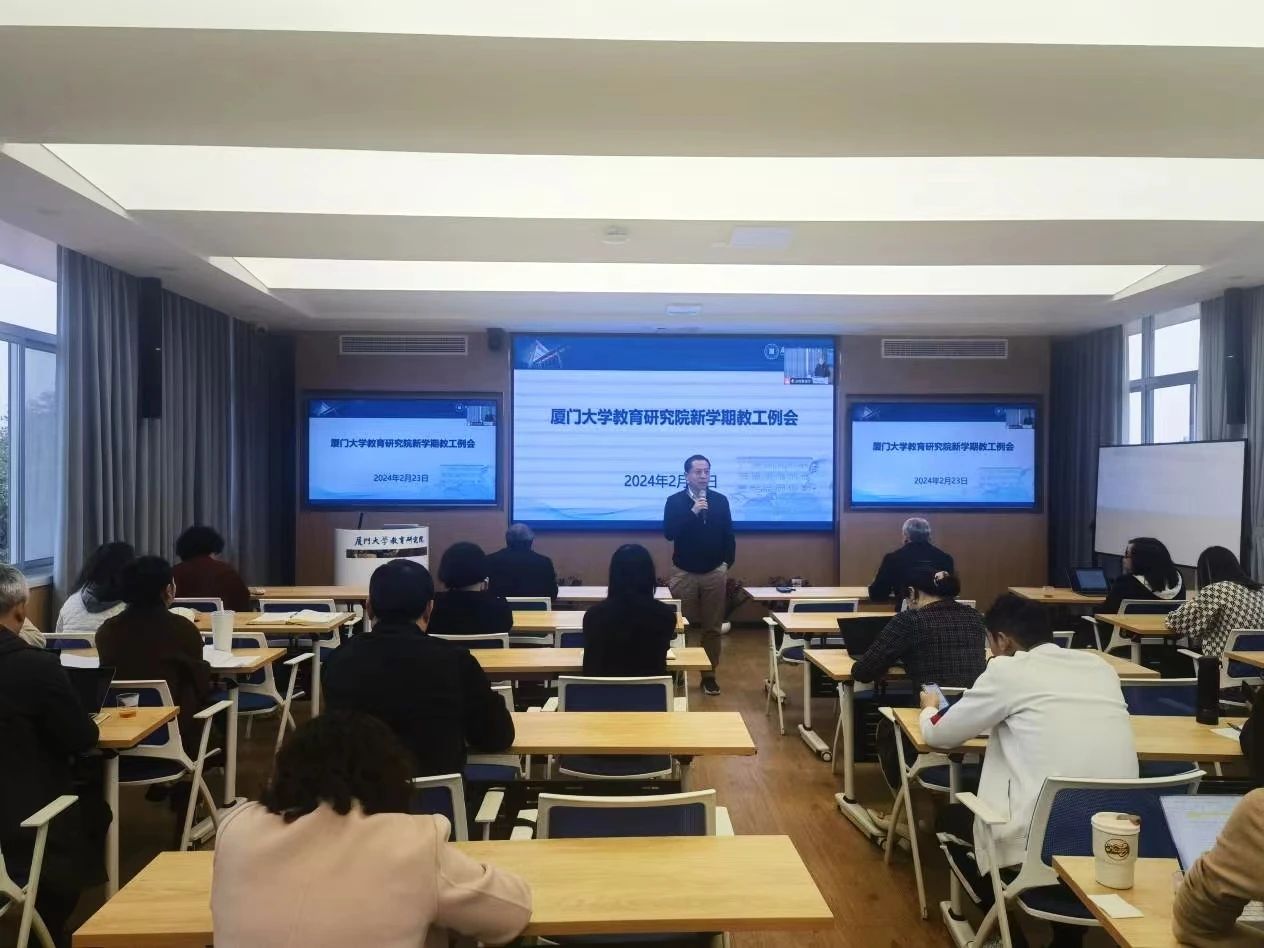 2月23日下午,教育研究院教职工大会暨新学期重点工作布置会在黄宜弘楼502报告厅召开。会议由院党委书记刘振天主持,全院在职教职工参加会议。