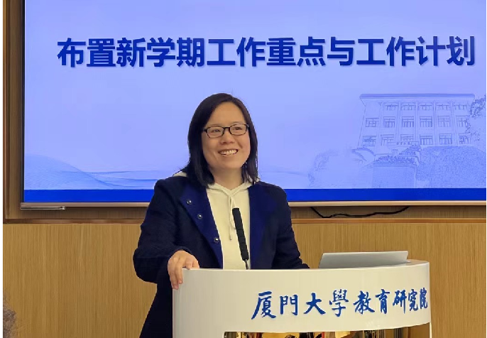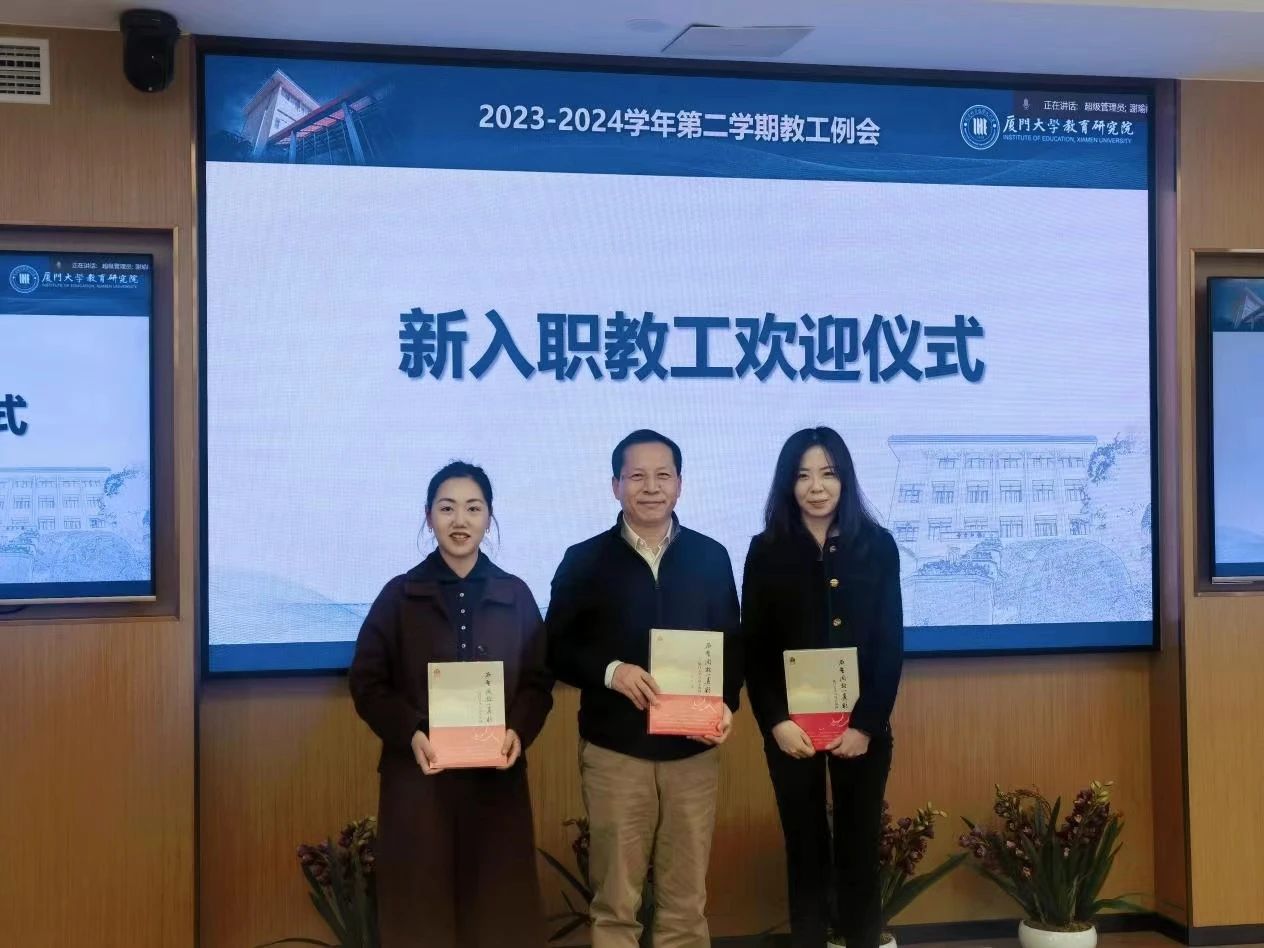在新教师入职仪式上,别敦荣院长向大家介绍了助理教授曹雪萌以及福建省高等教育研究院科研助理杨斯诗、谢瑜静等3位新聘老师的基本情况,院党委书记刘振天向新入职教工赠送书籍,对她们加入教育研究院“大家庭”表示热烈欢迎。