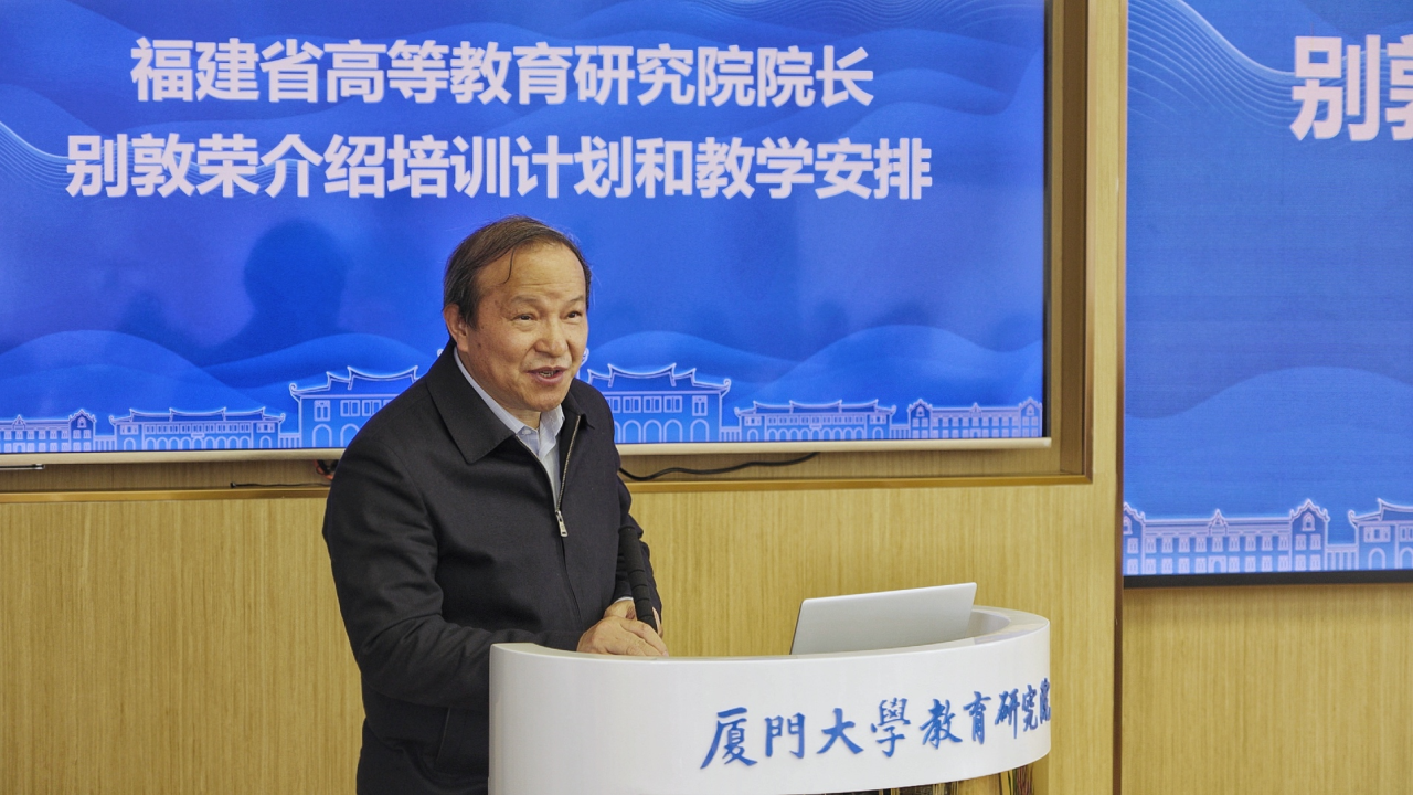 福建省高等教育研究院院长别敦荣介绍了福建省高等教育研究院成立以来所开展的主要工作,详细阐述了培训计划和教学安排的目标追求,指出本期培训班将聚焦“治理改革”“高质量发展”两个关键主题并展开深入研讨,以期为教育强省建设和各高校高质量发展找到改革突破点和战略创新思路。