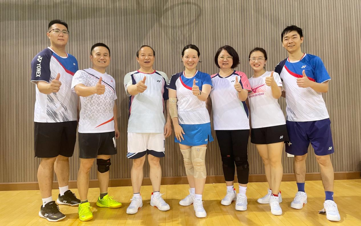 特别值得称颂的是,别敦荣老师和吕铖老师组成的男双,以坚定不移争一流的信念和高超的球技逆转了关键性的一场比赛,战胜了年轻的对手,提升了团队的士气。吕铖老师在代表学院出征学校篮球赛时膝盖和脚踝严重受伤,但仍带伤参加此次羽毛球赛,其坚韧不拔的精神极大地鼓舞了队友。全校队伍平均报名参赛人数为9.5人,但我队仅为6人。全队以集体荣誉至上的精神,在连一个替补都没有的情形下,一人兼数项,不顾疲劳认真争下每一分,赛出了风格,赛出了水平。我院羽毛球队还将以“一直在突破”的精神,迎接未来的挑战!
