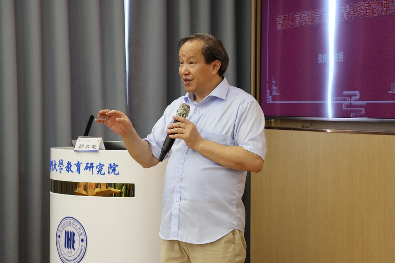 2021年7月12日,夏令营第一天,别敦荣院长在院502报告厅为夏令营营员们作学院整体介绍并作题为《普及化高等教育发展与青年学者的使命》的学术报告。