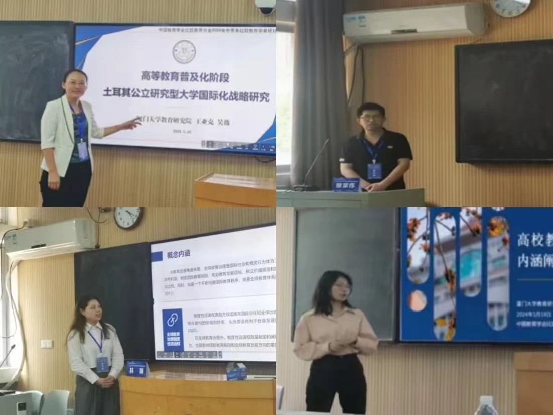在18日下午的分论坛中,博士生王亚克和吴薇老师作了题为《高等教育普及化阶段土耳其研究型大学国际化战略研究》的报告,博士生邢家伟作了题为《台湾地区高校大学双轨制评鉴制度研究——以M大学为例》的报告,博士生林琳作了题为《全球教育治理制度性话语权评估指标体系:理论建构与要素构成》的报告,硕士生严欢作了《高校教师全球胜任力:内涵阐释与框架构建》的报告。