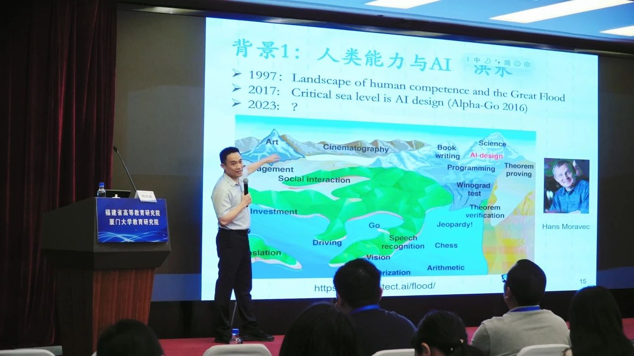 2024年6月5日下午,厦门大学信息学院洪学敏教授为福建省高校青年教师专业能力提升研修班学员授课,主题为“人工智能与高等教育:协同学习的远景与实践”。