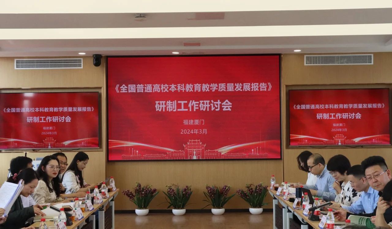 2024年3月25-26日,教育部教育质量评估中心在厦门大学教育研究院召开《全国普通高校本科教育教学质量发展报告(2023-2024 年度)》(以下简称《质量发展报告》)编制工作研讨会。评估中心主任徐维清、监测研究处处长张勇、副处长王铄等出席会议,来自同济大学、西安交通大学、北京交通大学、广西师范大学、北京教育科学研究院和我校等单位专家团队成员参加。我院院长、专家组组长别敦荣主持会议。