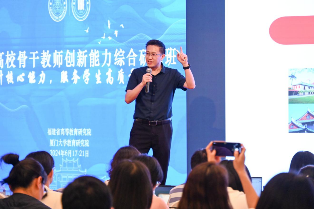 2024年6月19日下午,厦门大学教务处副处长(挂职)、建筑与土木工程学院李渊教授为福建省高校骨干教师创新能力综合研修班授课,主题为“从一流线上课程到翻转课堂教学再到教学创新比赛”。