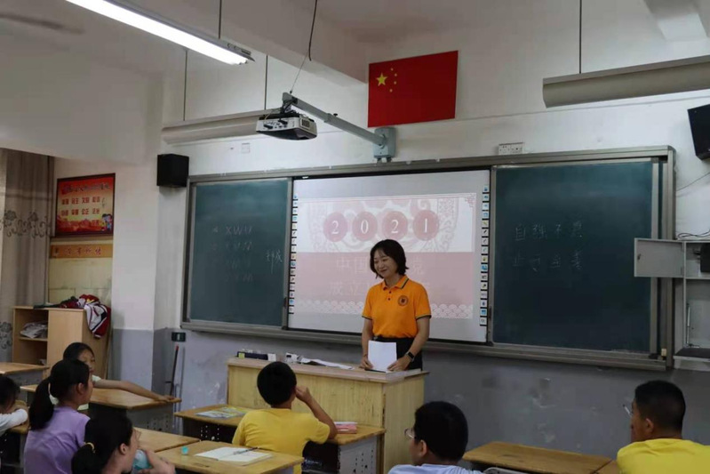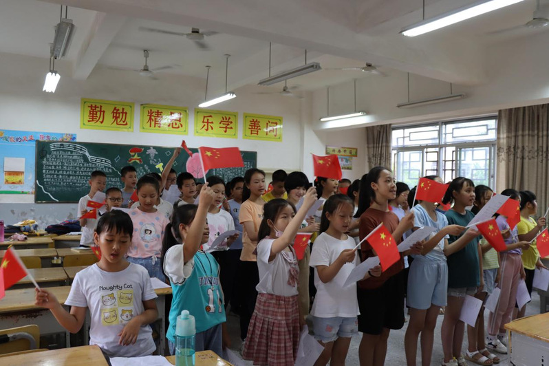 “我和我的祖国,一刻也不能分割,无论我走到哪里,都流出一首赞歌”。6月30日下午,在中国共产党百岁生日来临之际,实践队成员为了更好地培养登俊小学学生的爱国意识与爱党情怀,首先一起观看了主旋律电影《我和我的祖国》,并将其主题曲作为音乐课的合唱曲目。随着音乐旋律的响起,孩子们不自觉的开始跟着歌曲哼唱了起来,经过两个小时的练习,孩子们歌声中始终满含着对祖国的拳拳热爱和对党的无限敬仰。