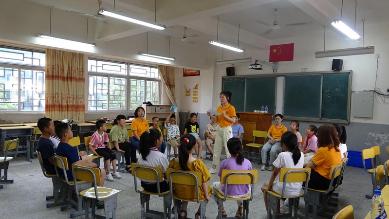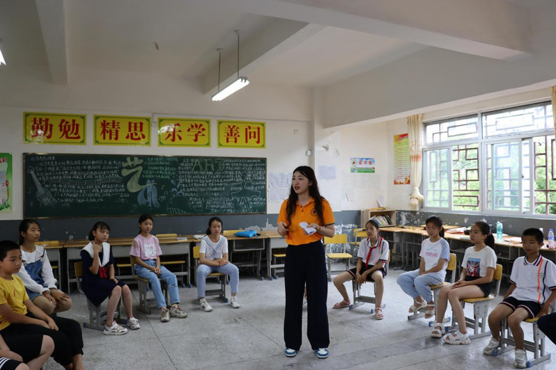 开班典礼结束后,按年级的不同将学生分为了A、B两班,进行破冰游戏,消融同学与实践队员间的陌生,增进感情。“大风吹”游戏,迅速拉近了队员们与同学们的距离,活动气氛热闹又愉快,之后大家又迫不及待地进行了“找零钱”、“击鼓传花”等不同的游戏,获得胜出的同学获得了丰富的小零食奖励,其他的同学也积极地展示才艺,加深了彼此的了解,教室里充满了欢声笑语,愉快的早晨很快就结束了。